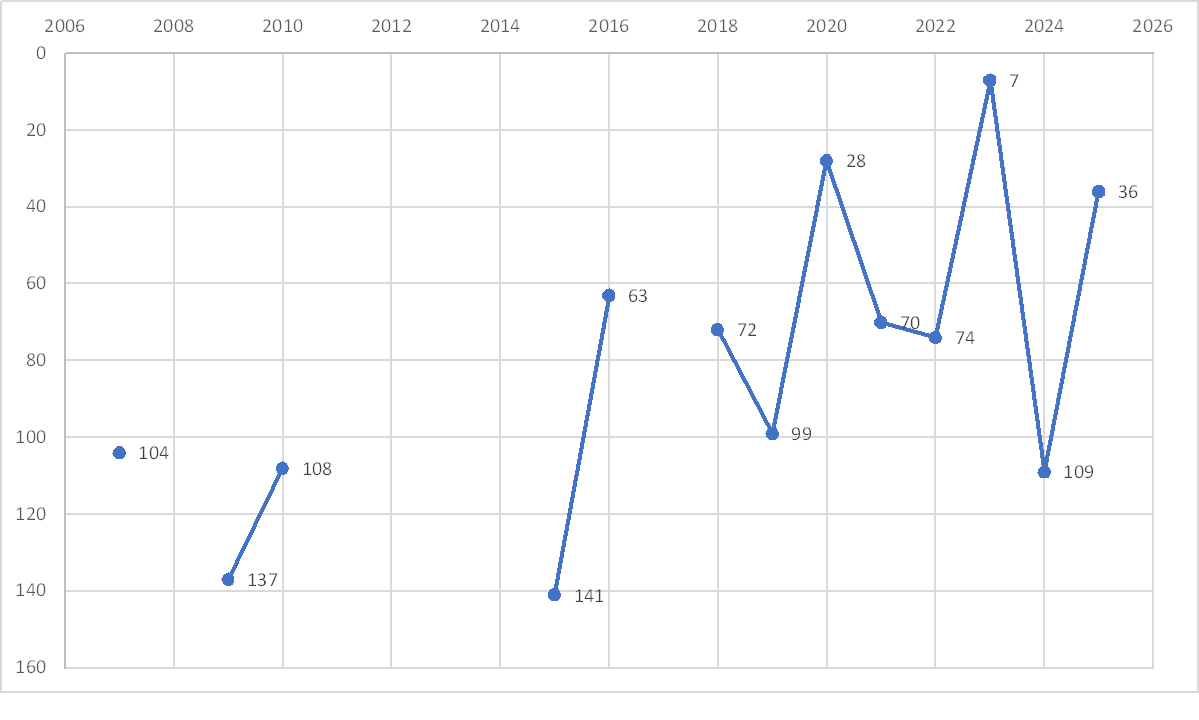 | AASTA | KOHT | RIIK | VÕITJA | TEINE KOHT | KOLMAS KOHT | EESTLASTE KOHAD |