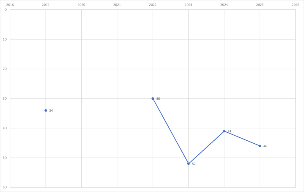 AASTA | KOHT | RIIK | VÕITJA | TEINE KOHT | KOLMAS KOHT | EESTLASTE KOHAD |
