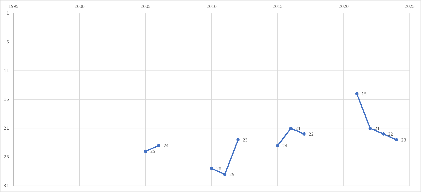 | AASTA | KOHT | RIIK | VÕITJA | TEINE KOHT | KOLMAS KOHT | EESTI KOHT | KOOSSEIS |